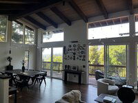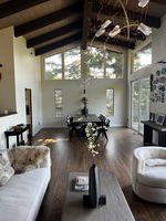 2) We have large windows with views of the woods and greenery outside. We would like to bring that greenery into the great room. We need help with this.