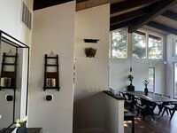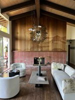 1) We have a large facade wall which requires an overhaul. There is a fireplace which we would like to replace with a sleeker and larger piece. The mantle isn't currently well defined. We need help with that. Above the mantle, the large space needs thought. We have a large decorative mirror that we'd like to keep.