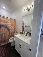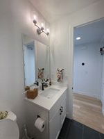 For the bathroom, we’re going for a moody jungle look with bold pops of color. We’d like to update the mirrors, sink, and either paint or wallpaper, and we’re considering adding molding for extra detail. The goal is to create an immersive, stylish, and nature-inspired space.