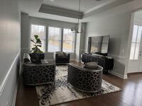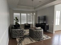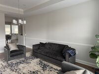 For your main color, we chose to use white/off-white as it offers a fresh, clean, feel to the space. White and off-white colors are often a favorite for walls because they are light, neutral, and match most color schemes. They are known to make rooms feel more airy and spacious.