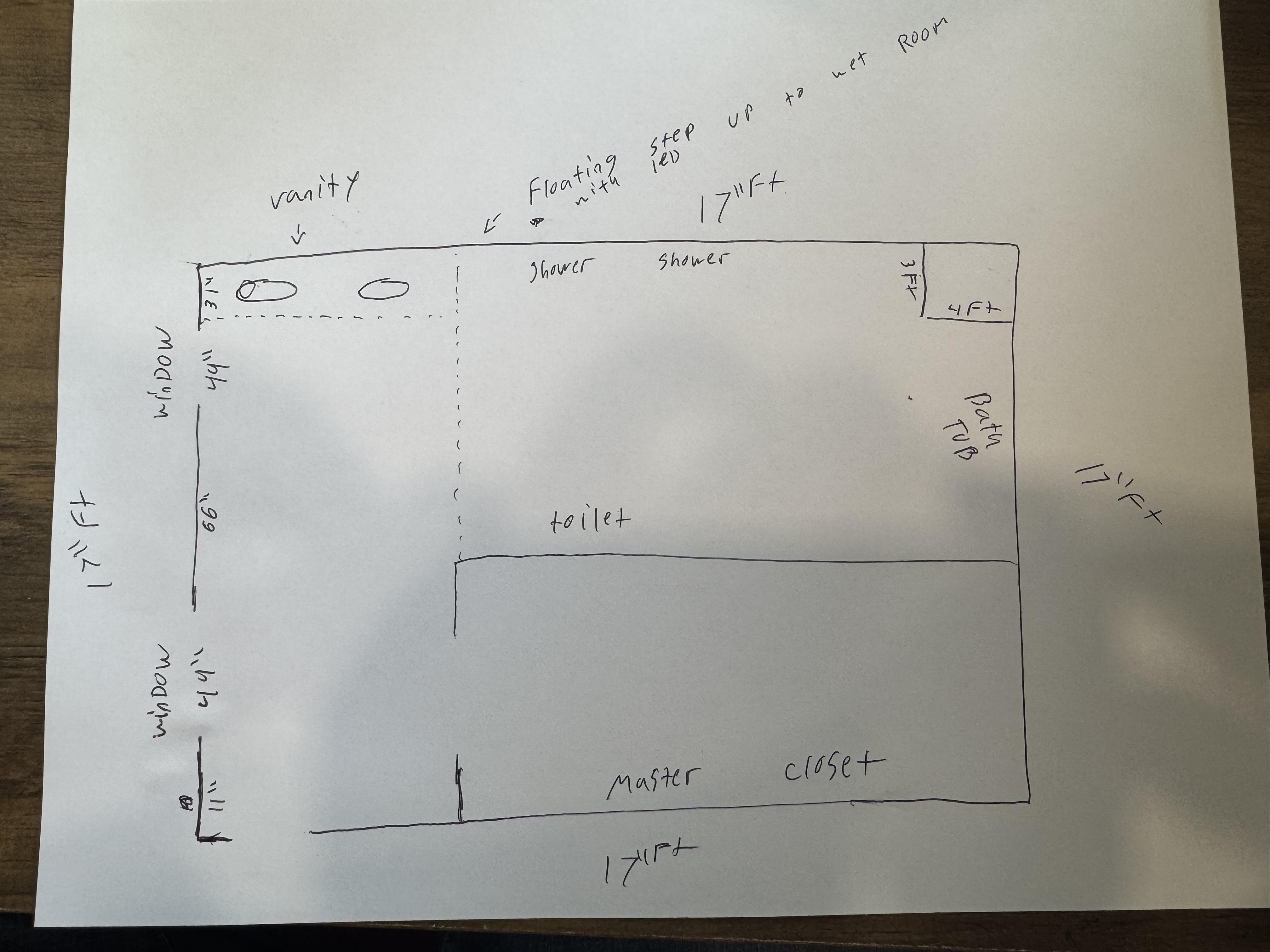 Need full Reno space is 17x17 need to do master bathroom and master closet