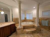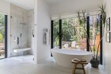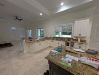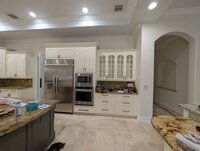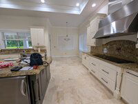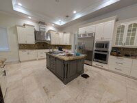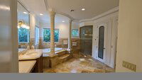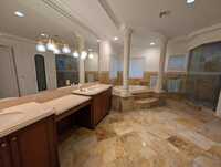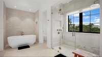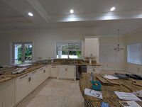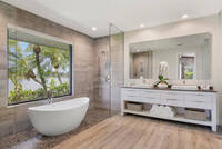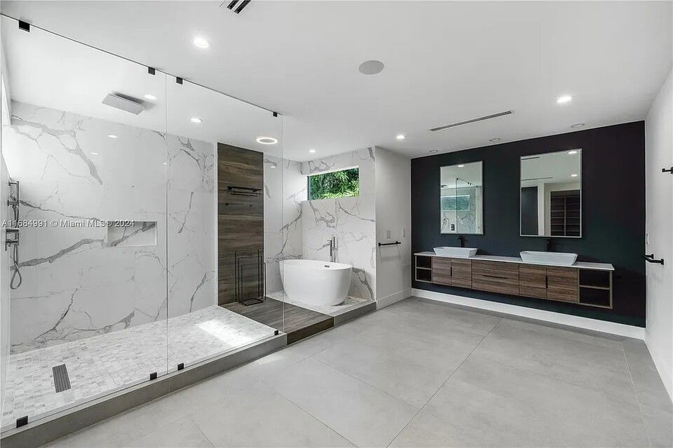 Hi Erika - For the rest of the house we installed 2'x4' porcelain tile. Links attached. We are also smoothing the walls and ceiling so it's flat and painting the walls sandy white Benjamin Moore. While doing so, we are replacing the 6" recessed lights with modern 4" square mud in trimless recessed lights with zooz light smart switches. All this slides the house to be more modern. I'm wondering if we should change the style of the bathroom. Please note that we added a kitchen to the project and we like you to design it. We want a consistent look and feel for the house.