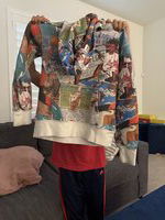 Above I included one of his sweat shirts. Grayson tells me for my walls I want the stuff on it to be like graffiti sports stuff not graffiti words. Andy Warhol type