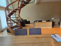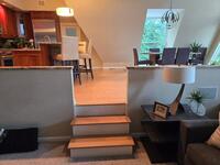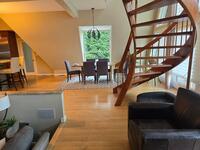 however, there is a large Oak tree that helps. We have had numerous contractors and architects look at options for changing out or moving the staircase. Due to the "A" the only good option was to add another dormer and move the staircase out of the main entryway but this was cost prohibitive. You will notice the staircase interferes with movement in an out of the doors. The staircase is not in great condition (because parts of it are laminated and peeling). Not sure what to do that would be cost effective, if anything.