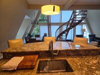 Lastly, it's obviously an extreme A frame which has always been challenging. We added the dormer where the dining table is and love that. We have never been able to figure out how we could add any pictures or pieces to the walls due to the "A" so they have always been bare, but not sure it matters.