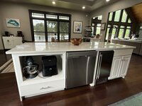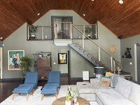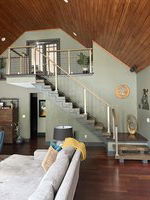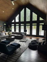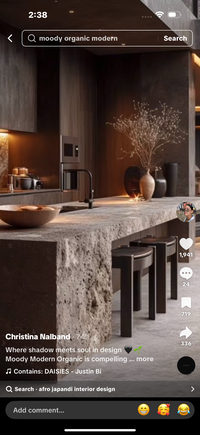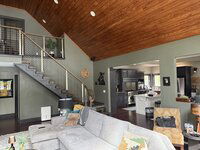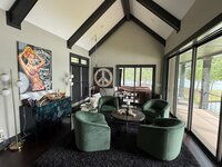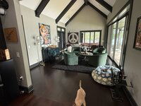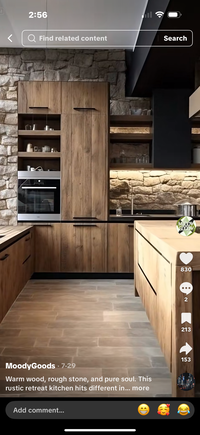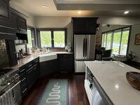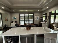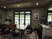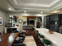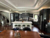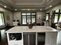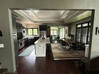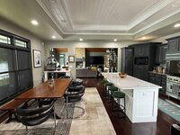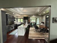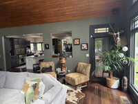 Lake house. Had Brazilian hardwoods in home and I wanted to keep them which is a challenge. Home has many windows and is on lake. The vibe with what I have done so far is moody masculine with a hint of asian. I want to keep that going. Project is expanding kitchen and adding covered porch-floors are all that we need to retain. Adding pantry and more space. This area tends to be where people hang at night. This home is used year round and will be primary. We love to cook and needed more space and wanted a second covered porch that enabled direct access from seating area of kitchen and to be used as a cigar lounge. Bedroom and master bath are original. Want to add soaking tub,