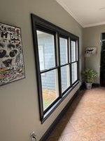 I included picks of adjacent rooms. Wall color in family room is Thunderous (Sw- may have that name wrong). Trim