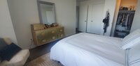 Creo que si consigo dos mesitas, una cama queen podría no caber porque la puerta del armario está en el camino. Estaba considerando quitar completamente la puerta del armario y poner un escritorio allí. No estoy segura de qué hacer y me encantaría tu consejo. Estoy abierta en ambos sentidos y un escritorio no es obligatorio si no cabe en el espacio.
