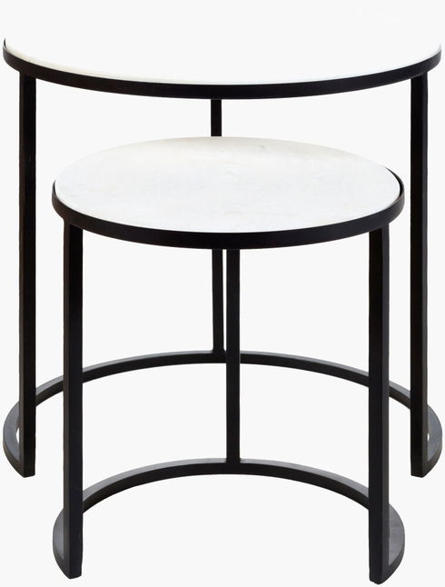 Clapp III (Set of 2) 20L x 20W Brown Round Wood Top with Black Metal Frame Nesting Accent Tables