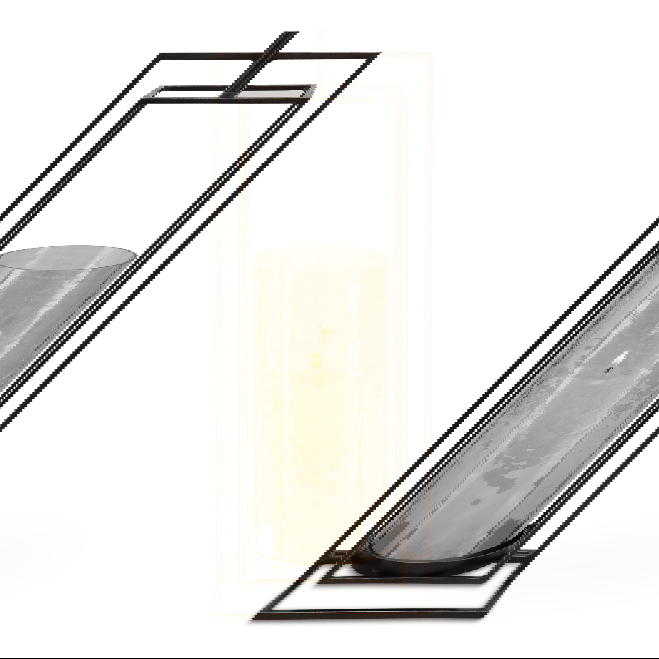 Illuminate Your Space With A Warm Glow From This Textured Glass And Iron Candle Lantern. Designed To Hold A Pillar Candle, It Features A Removable Textured Glass Hurricane And Iron Stand Finished In Dark Bronze With Gold Rub-through Details. One White 3"x 5" Candle Is Included.