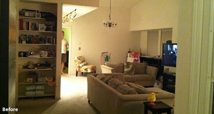 She wanted to create a good flow in her space. It’s a room where her husband watches TV, her kids build forts, and where she sneaks in a little bit of personal time on her laptop. We wanted this room to have multi-functional aspects to it, but yet not feel like three different spaces. So what did the transformation look like? What were the top tricks and tips?