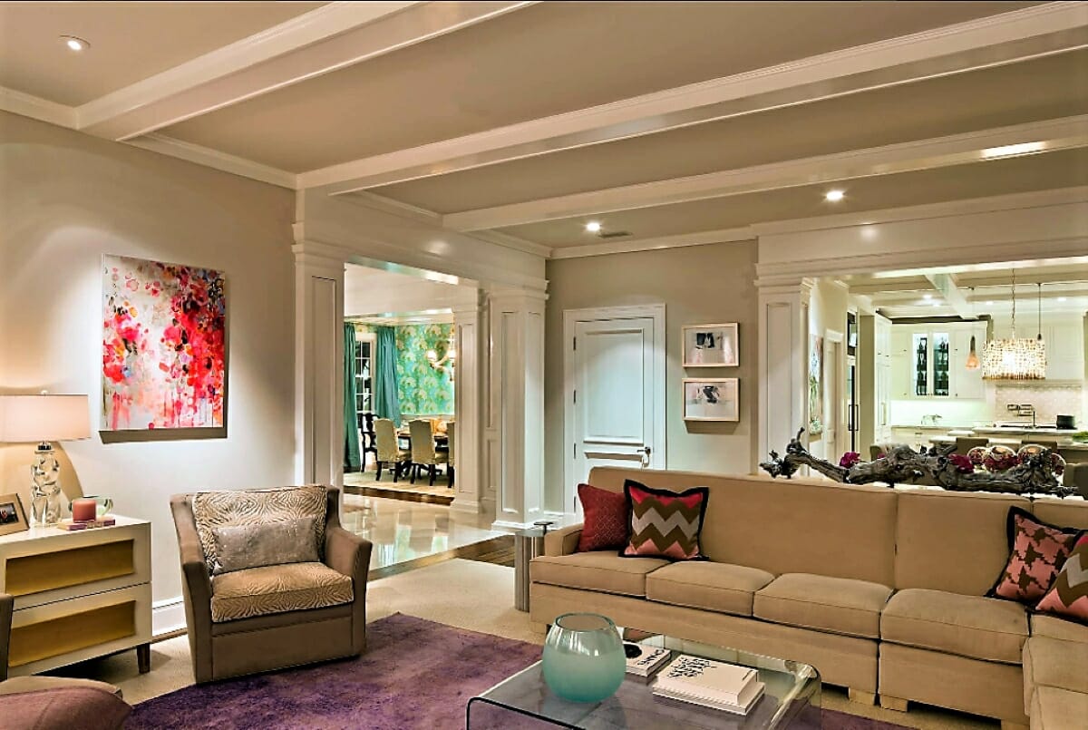 WHAT WE LOVE: Elaborated spaces with clean lines and colorful accents, together with eclectic harmony she achieves in transitional styles.