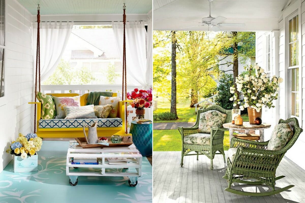 Putting up a porch swing by the front door is one of the best summer investments. Make lounging around, even more, relaxing by including plenty of playful, plush throw pillows.